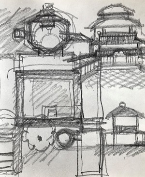 どんな建物でも、図面という完成品に至るまでは、たくさんのスケッチが描かれます。