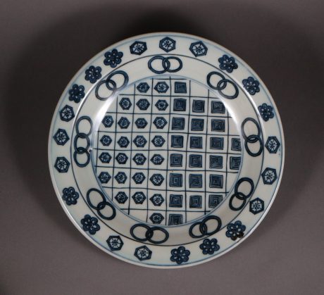 誰が付けたのか描き更紗文といわれる古染付大皿である。