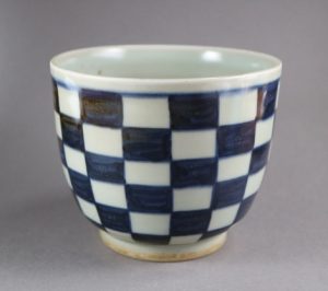 C-18タイ出土中国明・古染付市松文筒茶碗17~18世紀