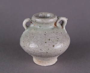 双耳の小壺の青磁であるが、小さいながら作りは精巧で大作の雰囲気を感じさせる。