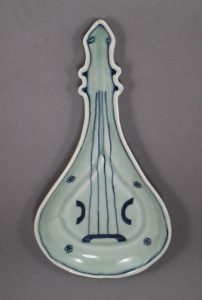楽器の琵琶の形をしたユニークな大型変形皿。
