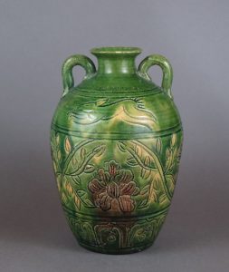 漳州窯か田杭窯で焼造された、美しく品の良い素三彩の瓶である。