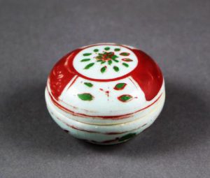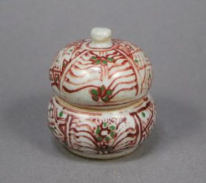 従来、安南(ベトナム)で焼かれたとされた赤絵の合子。