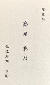 旧姓森田彩乃が高畠姓となり、仏師修業も明け、独立した彫刻師として活動を始めたとのことでした。