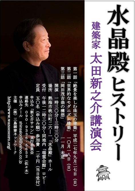 半年前から企画しておりました太田新之介先生の講演会が9月から始まります。