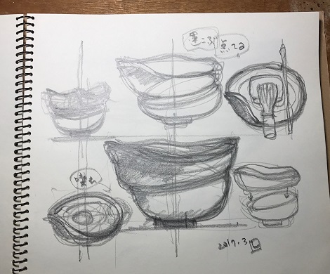 フォルムは今までにないものをと考え、何枚もスケッチをしてみました。