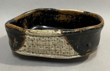 茶褐色の釉の窓に小さな格子絵がある沓型の茶碗で、革命とはいえ余りの変形と、重さに驚いたものでした。