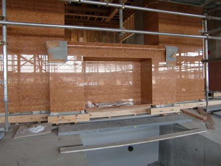 下 現場のマントロピース周りに貼った状況