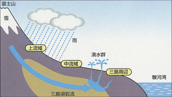 (図-湧水のメカニズム 参考資料三島市公式HP)