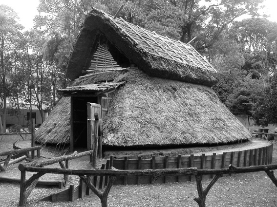下 弥生時代の竪穴住居(仮想復元ですが掘立式です。少し改修すれば住めるような感じがします)