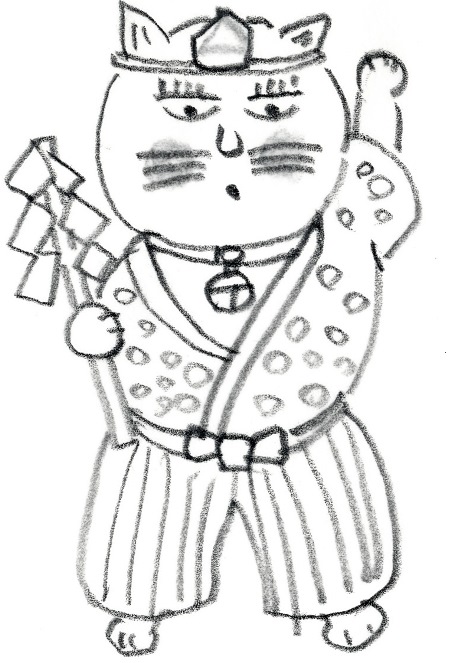 「タマで~す。木の建築はお祭りのお神輿と同じ木でできているニャーン。今年もわっしょいだニャーン」