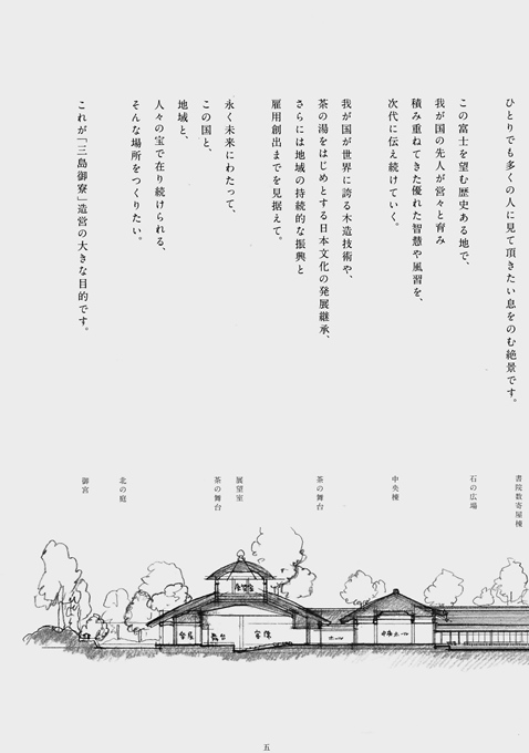 また三島御寮が世界の奥座敷となるように、ご皇族方のお立ち寄り先や迎賓館となるような品格を備えた建築にする予定でいます。