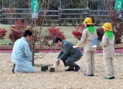 平成12年11月10日第50回全国植樹祭に天皇陛下がお手植えされたヒメシャラと皇后陛下がお手植えされたヤマボウシを、皇太子殿下(新天皇)がお手入れされました。