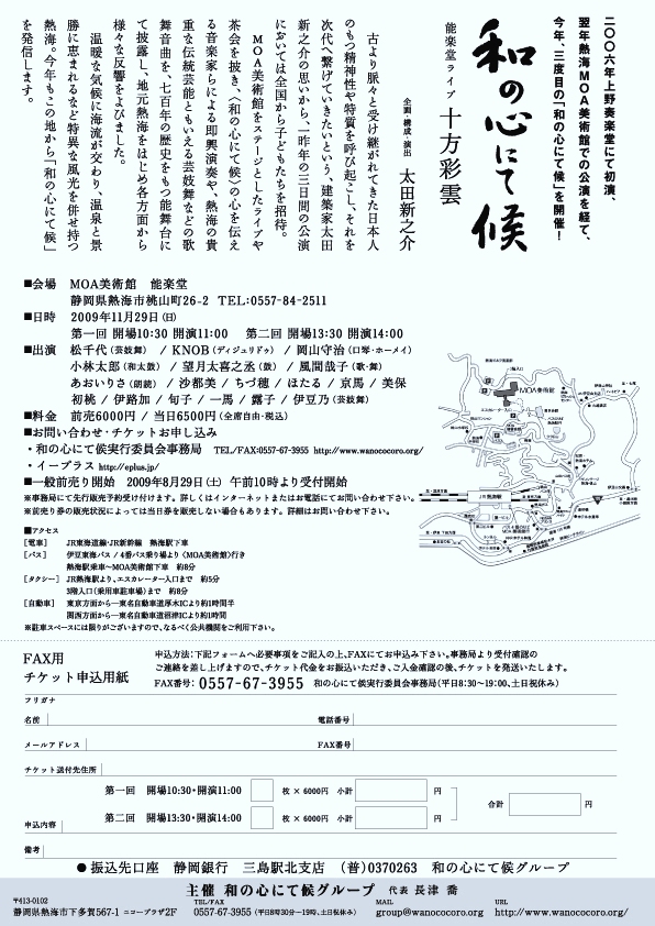 11月29日(日)”MOA美術館 能楽堂ライブ「十方彩雲」”