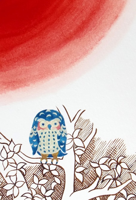 不思議な絵です。まるで夢の中に出てくるような風景が、森の仲間たちが集まって、様々な話をします。私の童話が魔法にかかったように彩りに染まり、ほほえましい気分になってきます。
