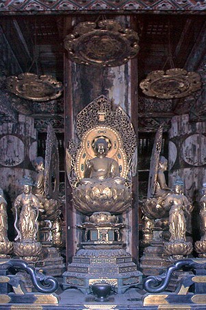 須弥壇を囲む4本の四天柱の中央に塔の高さ55mを貫く心柱が建っています。