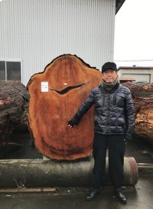 5日前に天然の秋田杉が競りに出るとの情報を得た私は、関係者の方たちと協議し、急遽、秋田県東能代の県立銘木センターの競り市に出かけました。