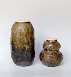 (左・丹波長茶入 右・伊賀瓢茶入 )