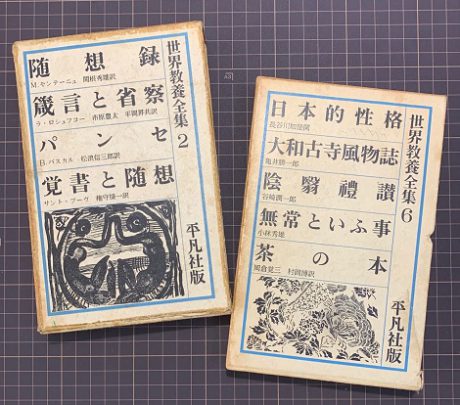 『世界教養全集6(平凡社刊)』という本には、谷崎潤一郎『陰翳礼讃』、亀井勝一郎『大和古寺風物詩』、小林秀雄『無常という事』、岡倉覚三(天心)『茶の本』が収められていた。