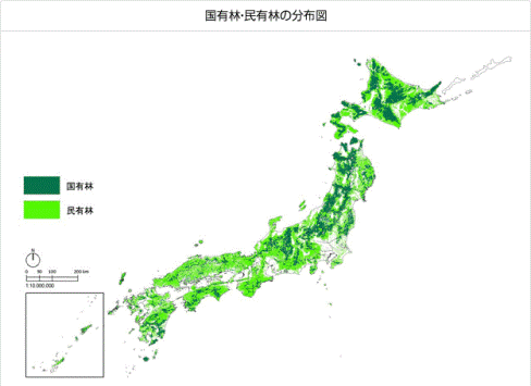(画像 日本列島の森林分布図)